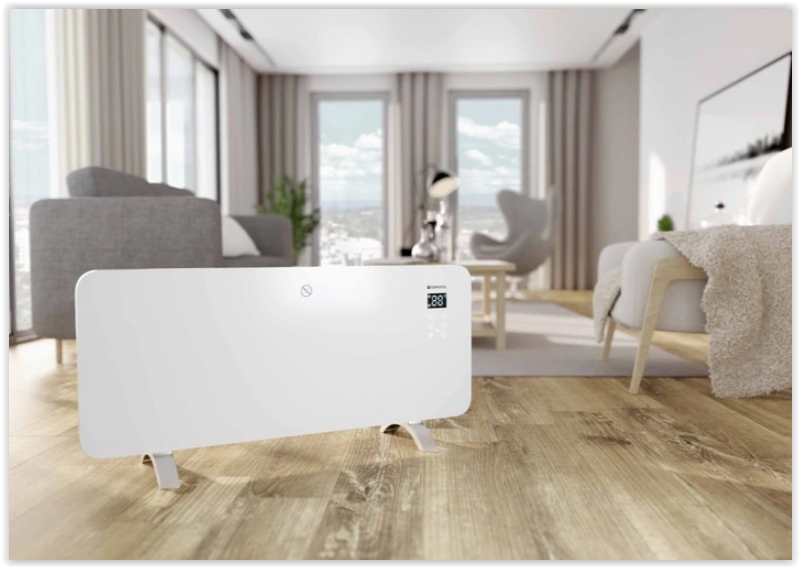 Het is een moderne en energiezuinige convectorkachel met mogelijkheid tot wandmontage of op poten.